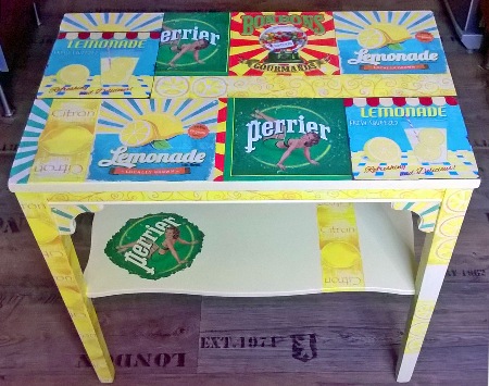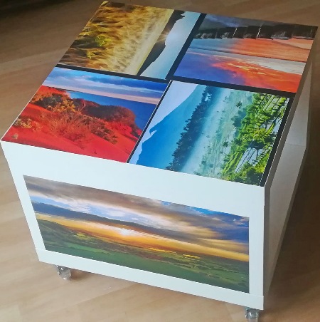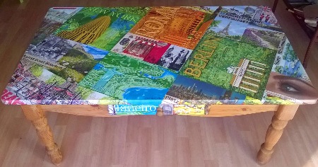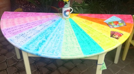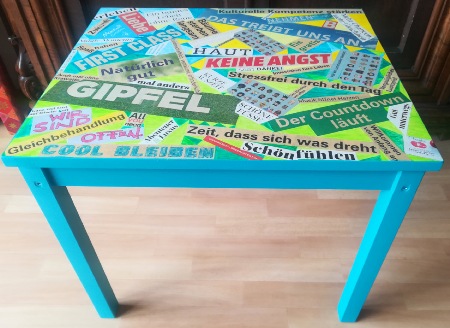 Tisch nach Goethes Farbenlehre mit Sprüchen übers Glück