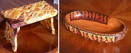 Schemel Ägypten Holzschale Krieger (B 45 T 24 H 29,5 cm) (B 31,5 T 17 H 6)