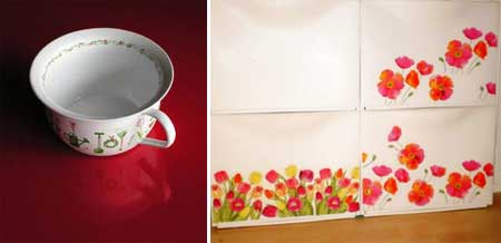 Blumenübertopf Schuhschrank Tulpenfeld / Mohnfeld (D 20 H 10,5 cm)